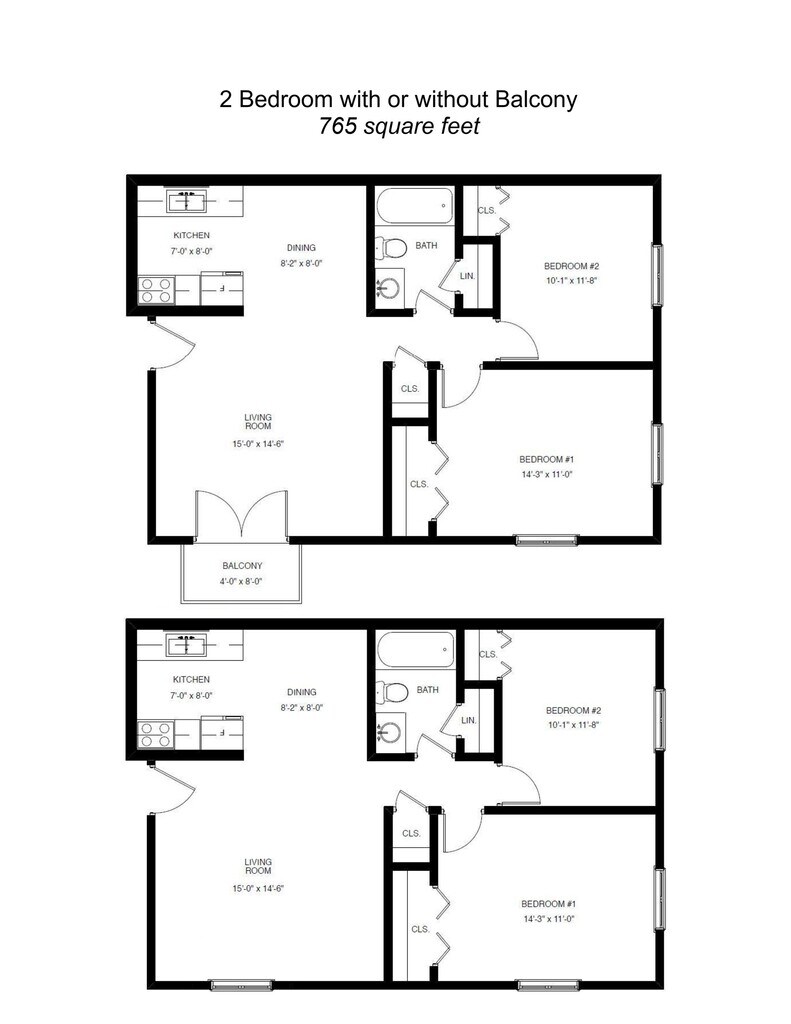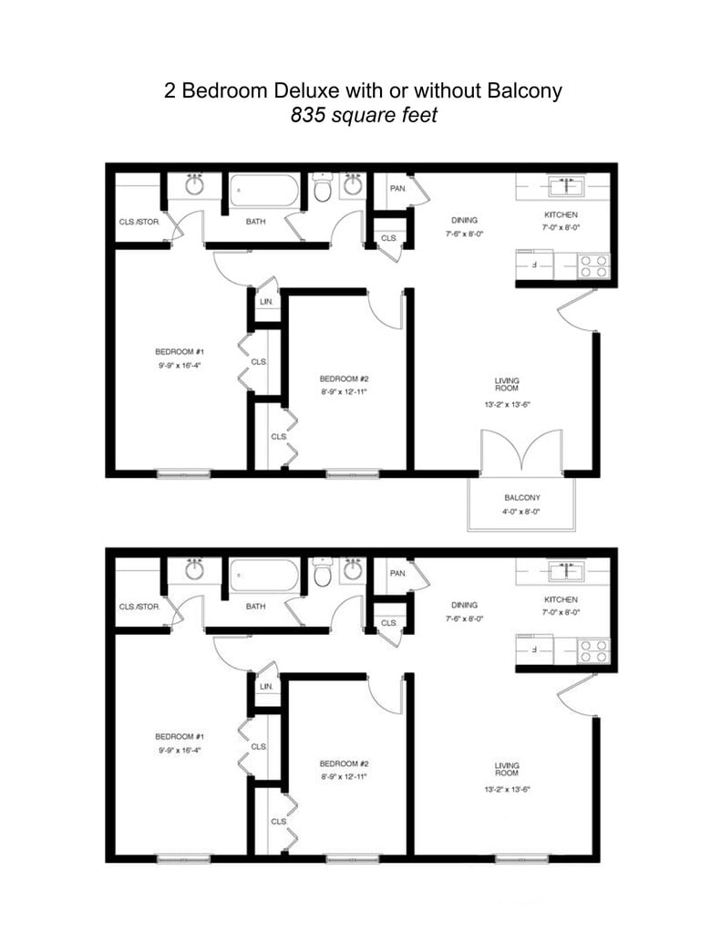 Apartment Model: 2B-DB$9752 Bedroom, 1.5 Bath, 835 sq ftAvailable Now![]()