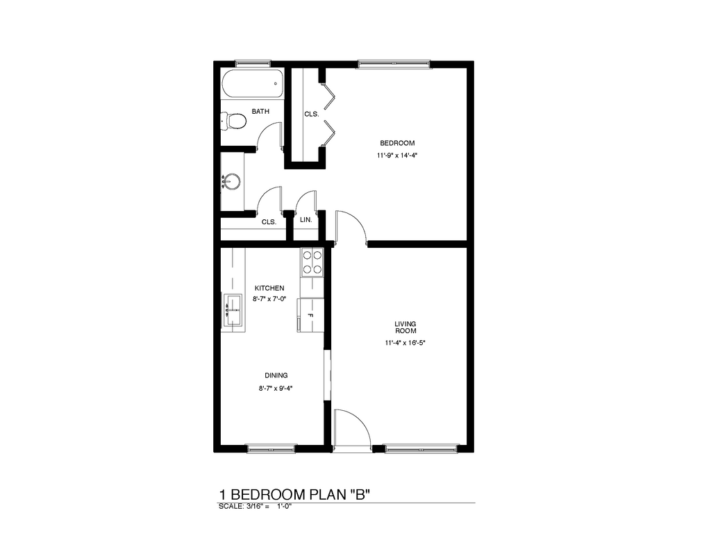 1B - Floorplan 2 Apartment Unit: Building B-46Apartment Model: 1B$7881 Bedroom, 1 Bath, 573 sq ftAvailable Now1B-P