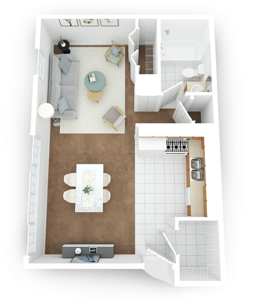1 Bed, 1 Bath, 573 sq ftAvailable NowModel Gallery