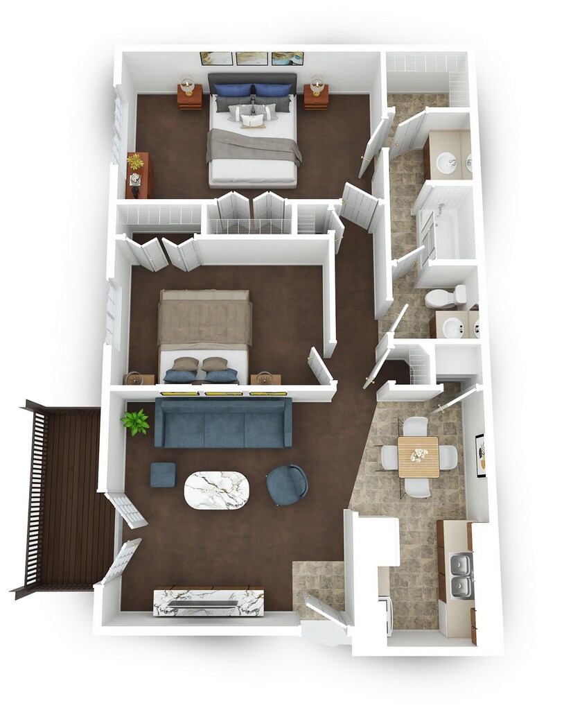 2 Beds, 1 Bath, 738 sq ftAvailable NowModel Gallery