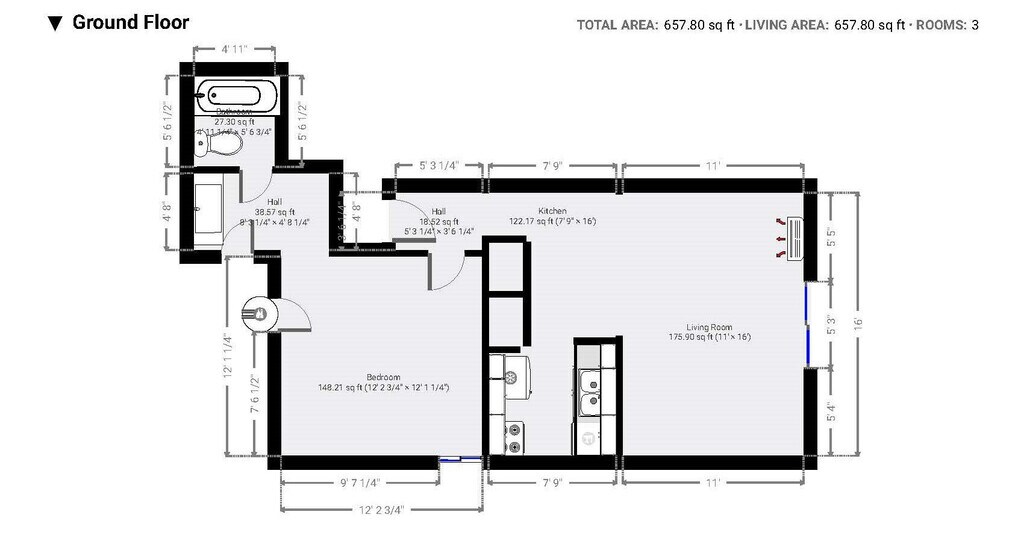 1 Bed, 1 Bath, 598 sq ftModel Gallery
