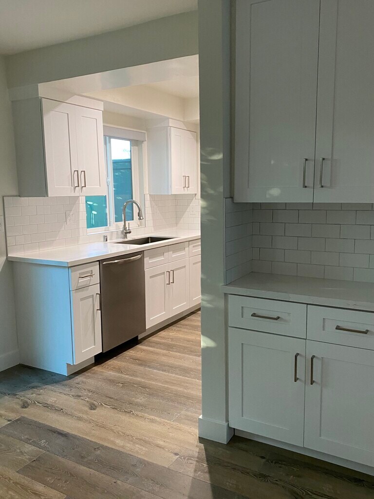 **HALF Off one months Rent Special move in rent Special!!** BRAND NEW Remodeled 2-bedroom, 1.5-bathroom Two Story Townhouse with: Shaker white cabinets in the kitchen and bathrooms, white quartz counters, tile floors in the bathroom, stylish wood laminate floors in the living room, kitchen & bedrooms, SOAKING tub, STAINLESS STEEL APPLIANCES (dishwasher, range, microwave & refrigerator), WASHER and DRYER & fixtures and SMOOTH CEILINGS throughout! includes PRIVATE patio! Quiet, Controlled access building. Gated parking with 2 assigned parking spaces. Minutes from the 405 Freeway. Friendly Onsite Manager! Controlled Access Building.