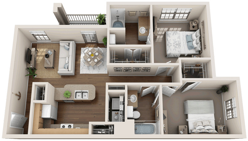 2 Beds, 2 Baths, 960 sq ftModel Gallery
