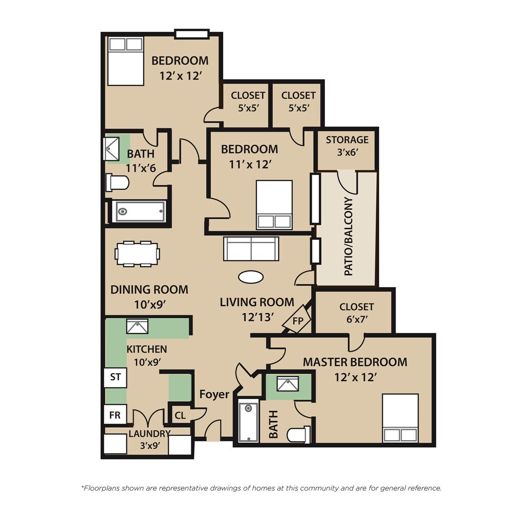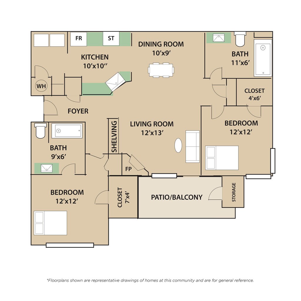 Apartment Model: Burgundy3 Bedroom, 2 Bath, 1377 sq ftUnavailable![]()