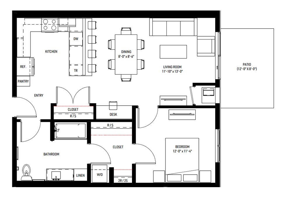 1 Bed, 1 Bath, 820 sq ftPlus FeesAvailable NowModel Gallery