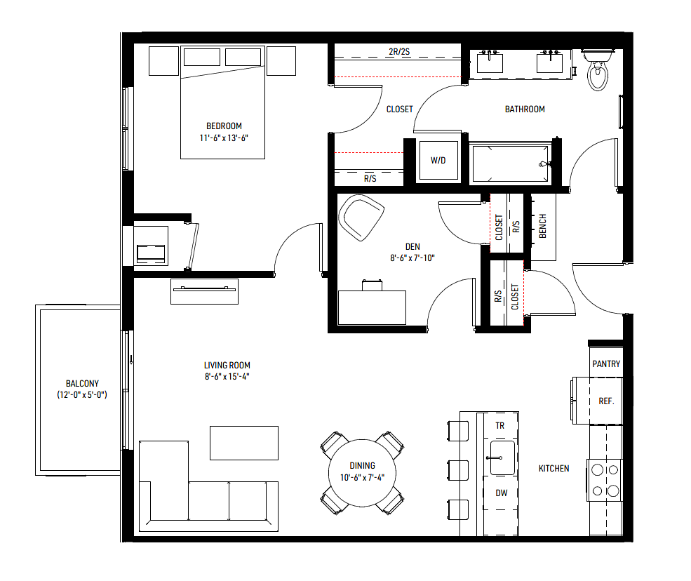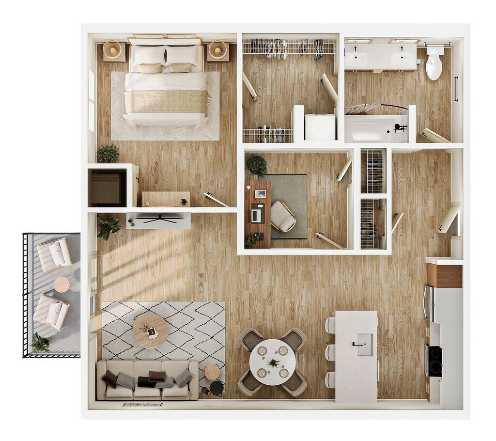 1 Bed, 1 Bath, 765 sq ftPlus FeesAvailable NowModel Gallery