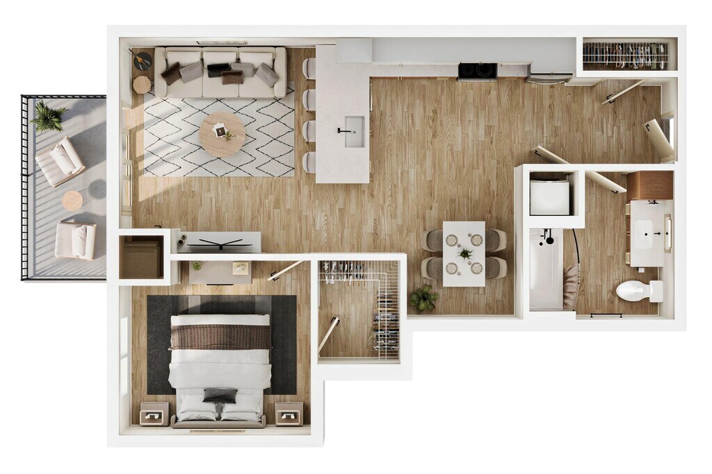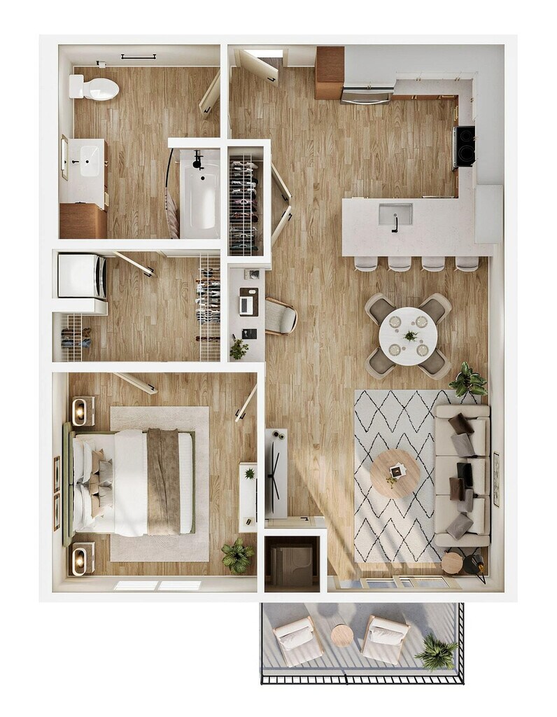 1 Bed, 1 Bath, 705 sq ftPlus FeesAvailable NowModel Gallery