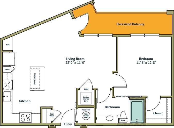 Studio, 1 Bath, 571 sq ftAvailable NowModel Gallery