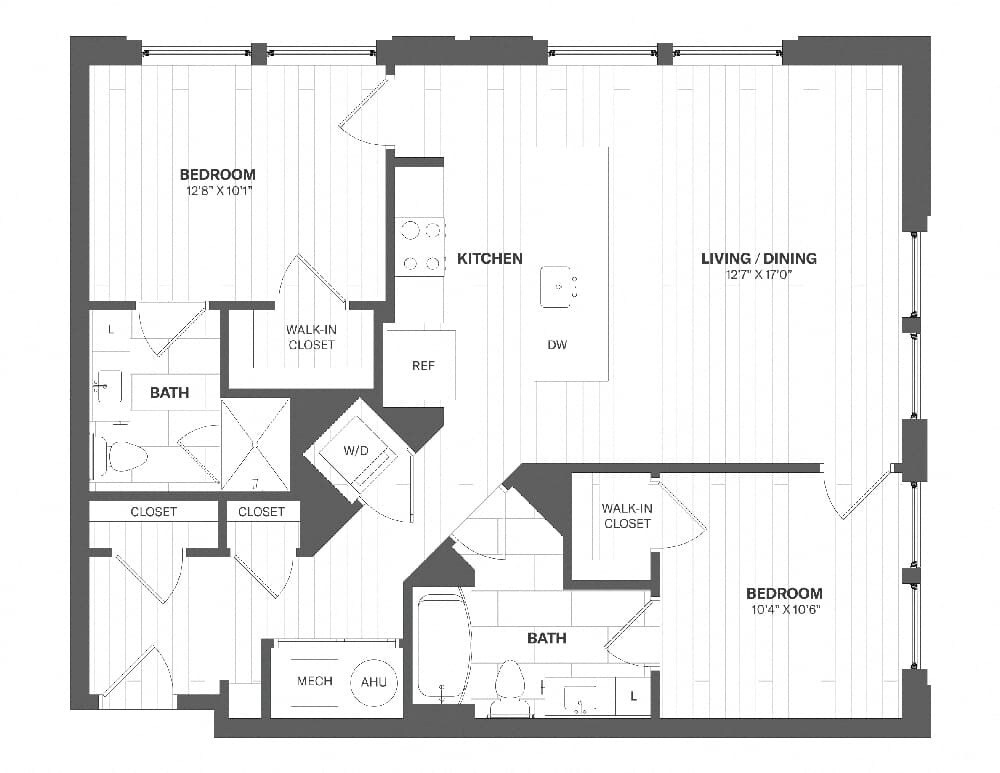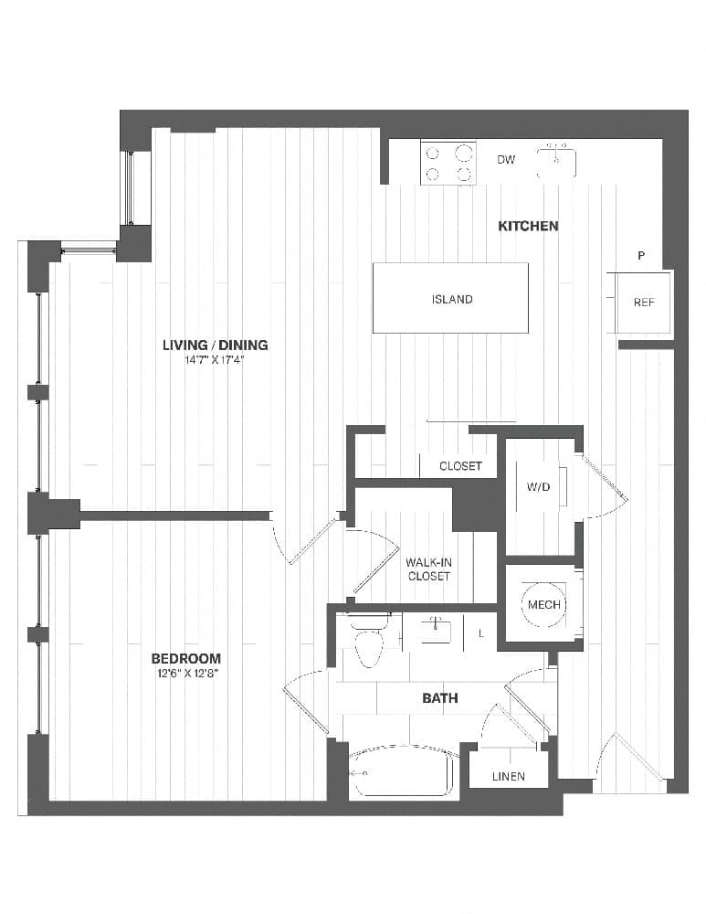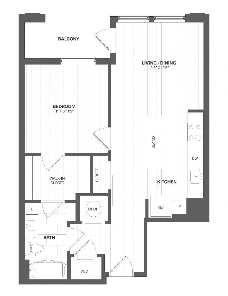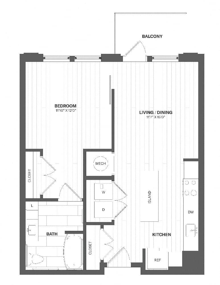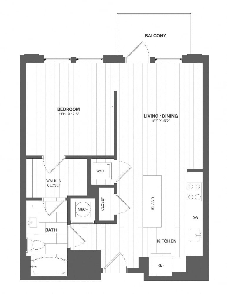 JR 1A - Floorplan 1 Apartment Unit: 813Apartment Model: JR 1A$1,9941 Bedroom, 1 Bath, 632 sq ftAvailable Now![]()