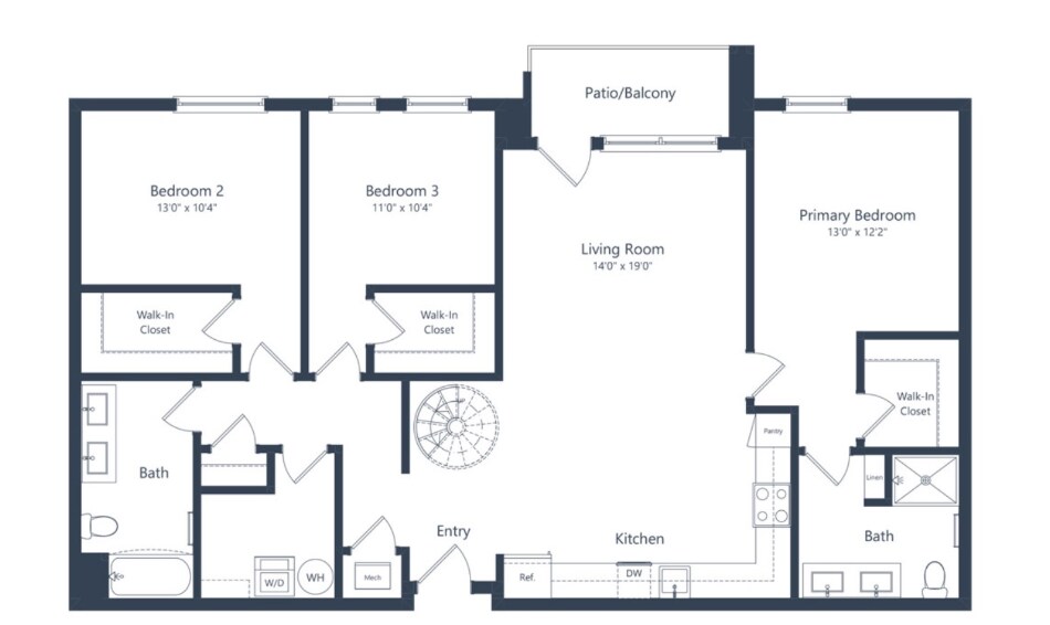 One Bedroom Loft - Floorplan 2 Apartment Unit: 4055Apartment Model: One Bedroom Loft$2,2171 Bedroom, 1 Bath, 834 sq ftAvailable December 8, 20252 Bedrooms