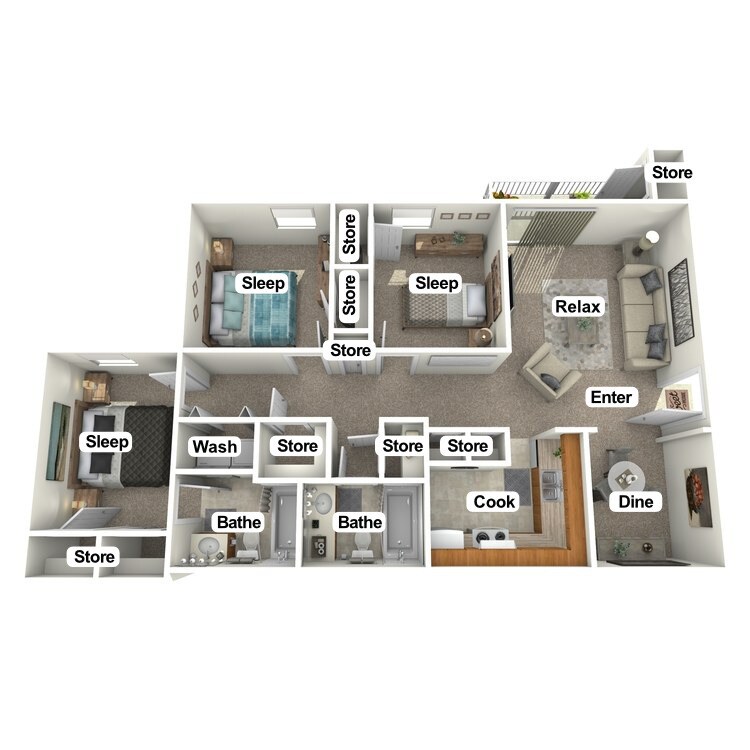 3 Beds, 2 Baths, 1247 sq ftAvailable NowModel Gallery