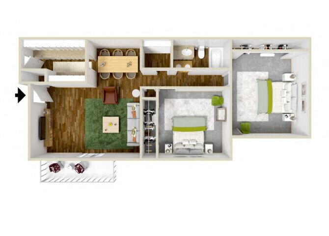 2 Beds, 1 Bath, 850 sq ftAvailable NowModel Gallery