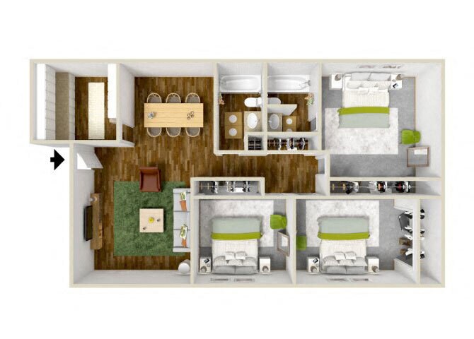 - Spacious One, Two, and Three Bedroom Apartments