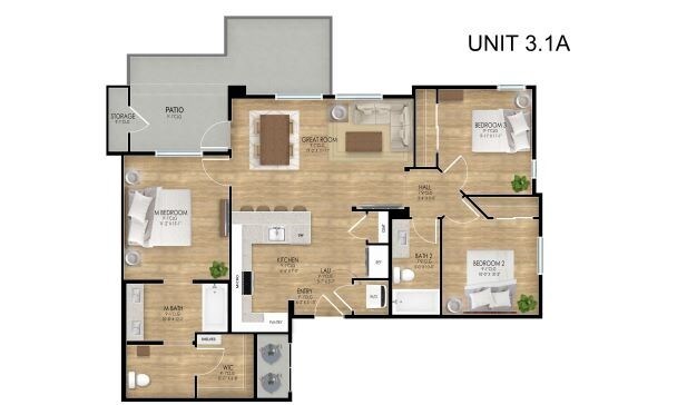 3BD, 2BTH B - Floorplan 1 Apartment Unit: 4106Apartment Model: 3BD, 2BTH B$2,2503 Bedroom, 2 Bath, 1127 sq ftAvailable Now3BD, 2BTH A