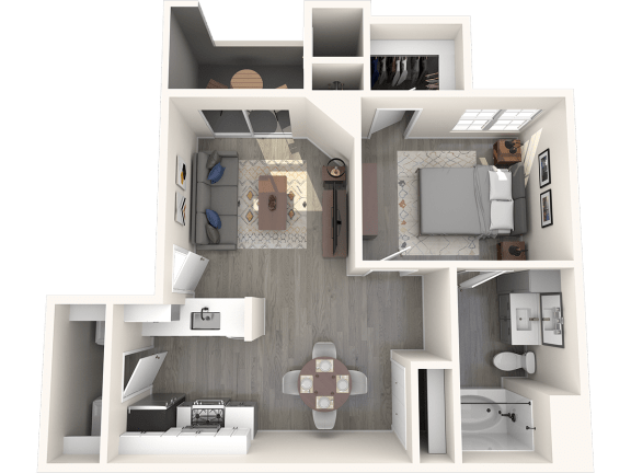 Apartment Model: 1 Bed 1 Bath Classic$1,2621 Bedroom, 1 Bath, 750 sq ftAvailable NowFloorplansPhotos![]()