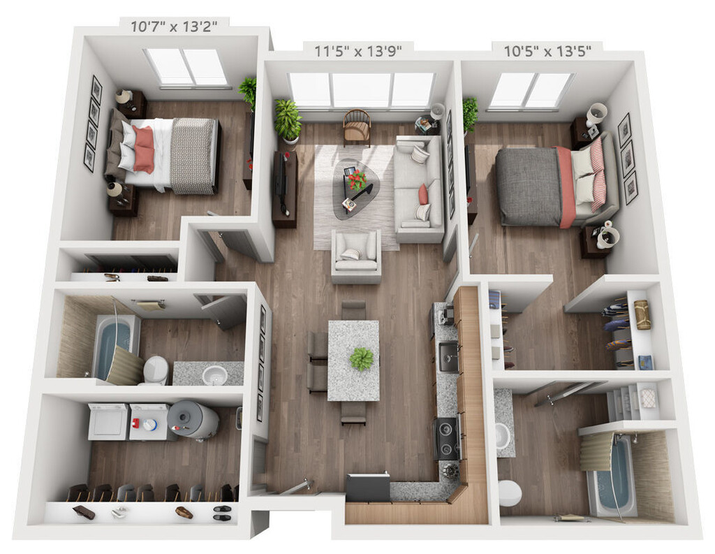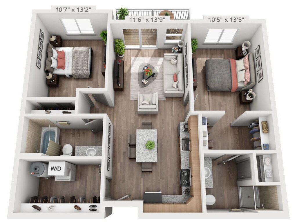 2 Beds, 2 Baths, 1064 sq ftAvailable NowLargest 2 BedroomThis is the largest 2 Bedroom at this PropertyModel Gallery