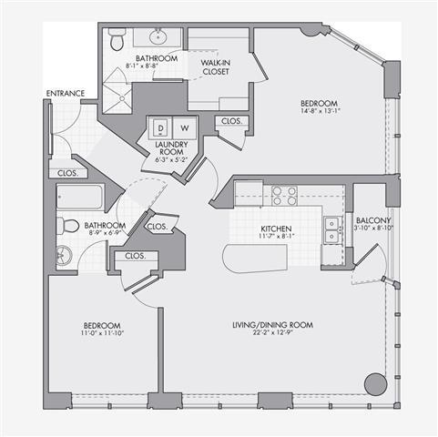 1 Bed, 1.5 Baths, 1114 sq ftAvailable NowLargest 1 BedroomThis is the largest 1 Bedroom at this PropertyModel Gallery