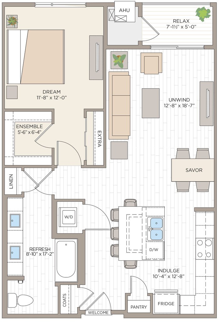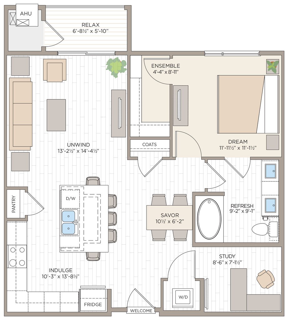 Apartment Model: A1 - AugustaFrom $1,8911 Bedroom, 1 Bath, 699 sq ftAvailable NowFloor plans are artist's rendering. All dimensions are approximate. Actual product and specifications may vary in dimension or detail. Not all features are available in every rental home. Prices and availability are subject to change. Base rent is based on monthly frequency. Additional fees may apply, such as but not limited to package delivery, trash, water, amenities, etc. Deposits vary. Please see a representative for details.