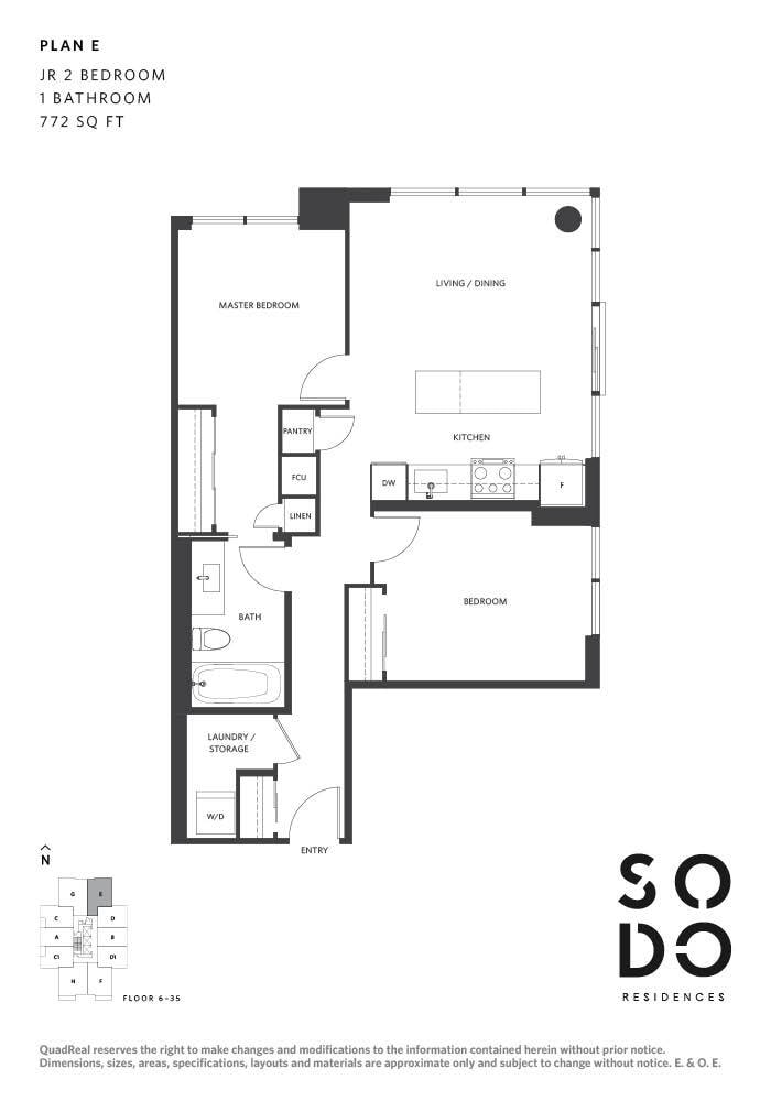 1 Bedroom to 2 Bedroom Apartments at SODO currently range from $1,775 to $2,560