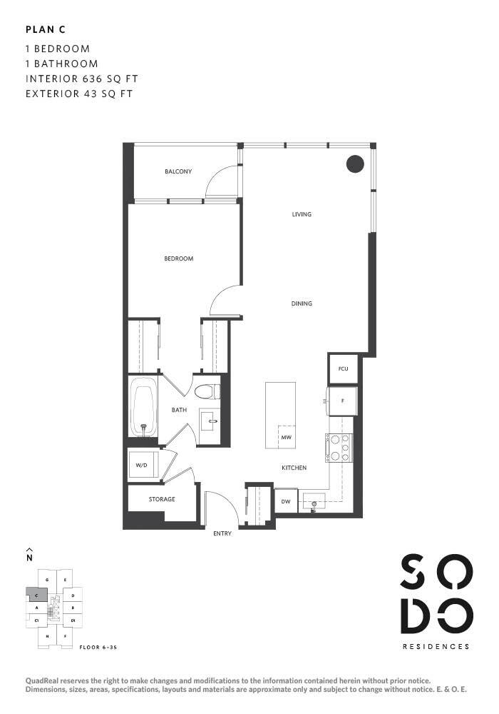 Apartment Model: C$1,9501 Bedroom, 1 Bath, 636 sq ftUnavailable![]()