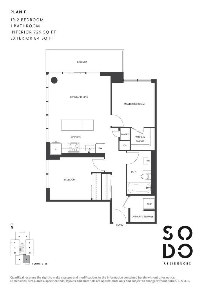 F - Floorplan 1 Apartment Unit: 708Apartment Model: F$2,1402 Bedroom, 1 Bath, 729 sq ftAvailable November 8, 2025Floorplan G