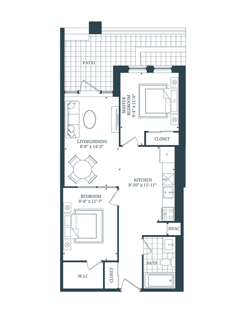 Apartment Model: SO2B02From $1,8752 Bedroom, 1 Bath, 776 sq ftUnavailableSO2B02 - Floorplan 1 SO2B01