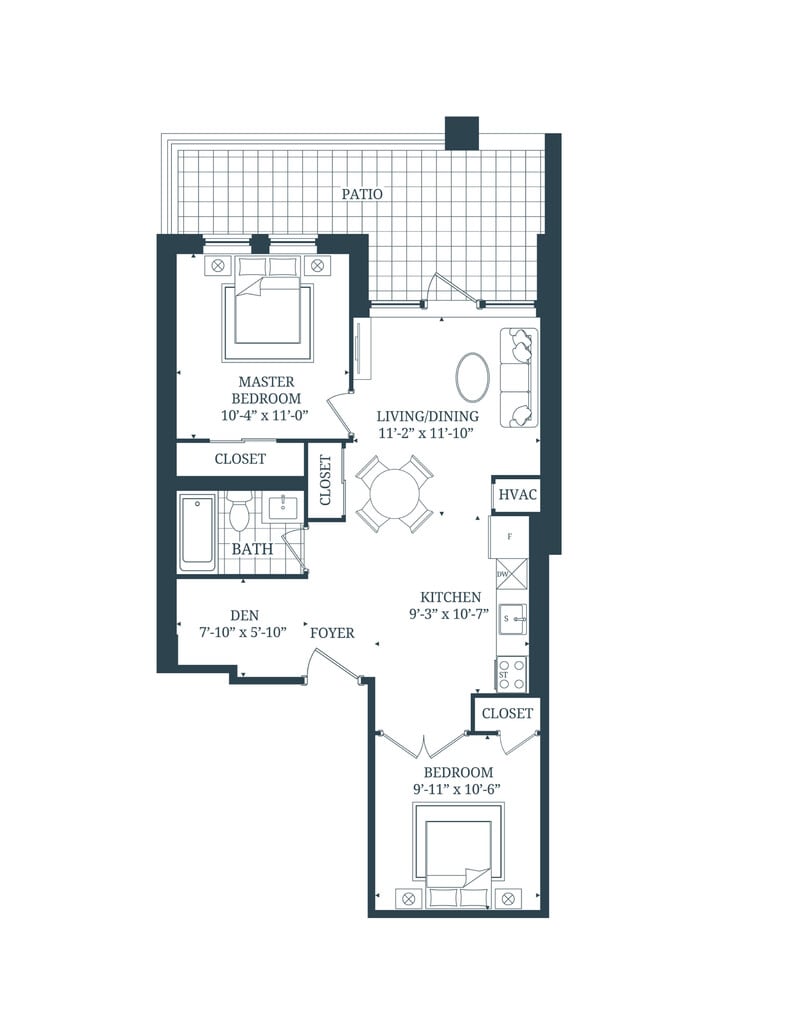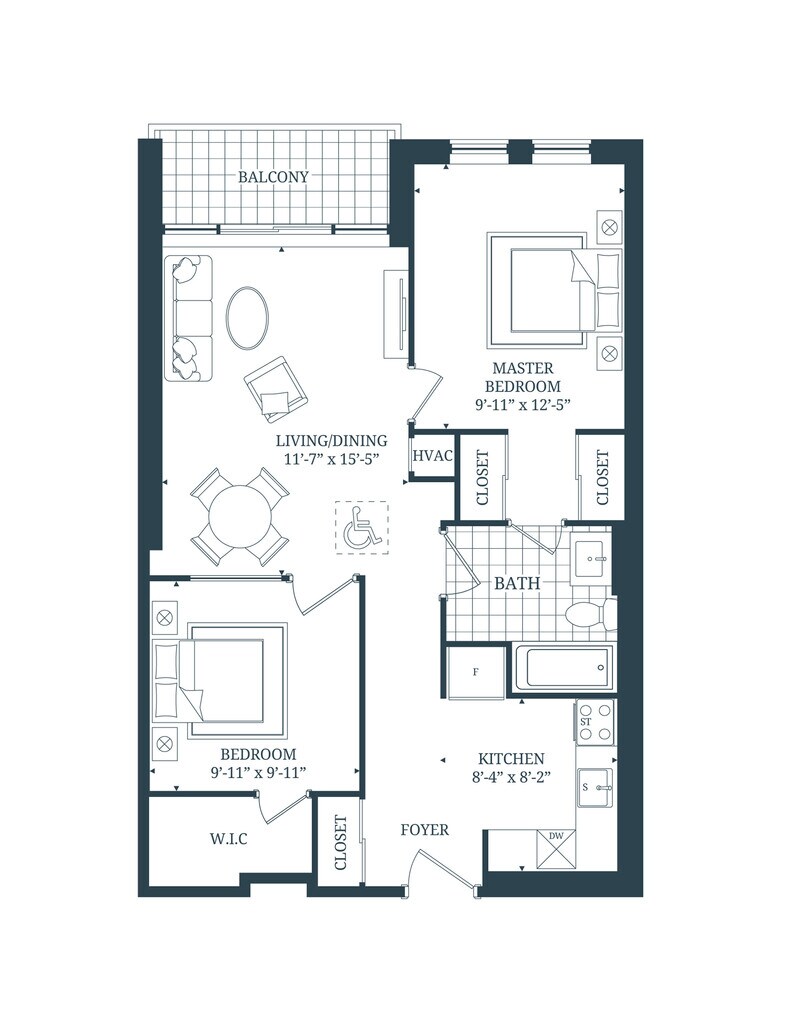 2 Beds, 1 Bath, 717 sq ftModel Gallery