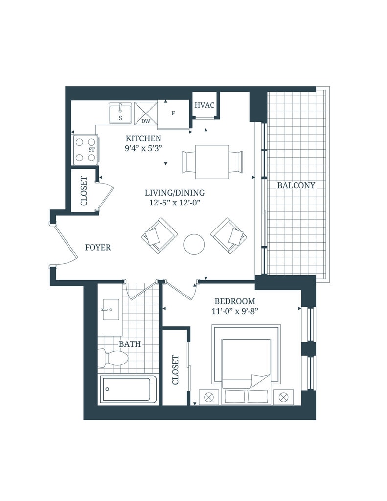 1 Bed, 1 Bath, 457 sq ftModel Gallery