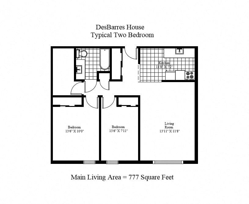 - 2 Bedrooms- 2 Bedroom2 Beds, 1 Bath, 777 sq ft- Model Gallery- Floorplans- Availability Details- Availability Date - Unit - Sq Ft - Unavailable - 2 Bedroom - 777 sq ft - Model Amenities and Features- Features- Air Conditioning
