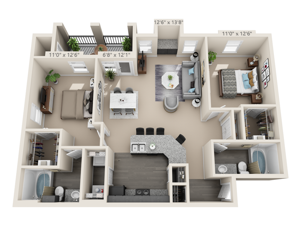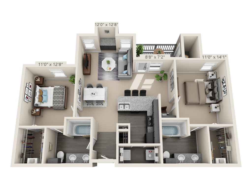 2 Beds, 2 Baths, 956 sq ftAvailable NowModel Gallery