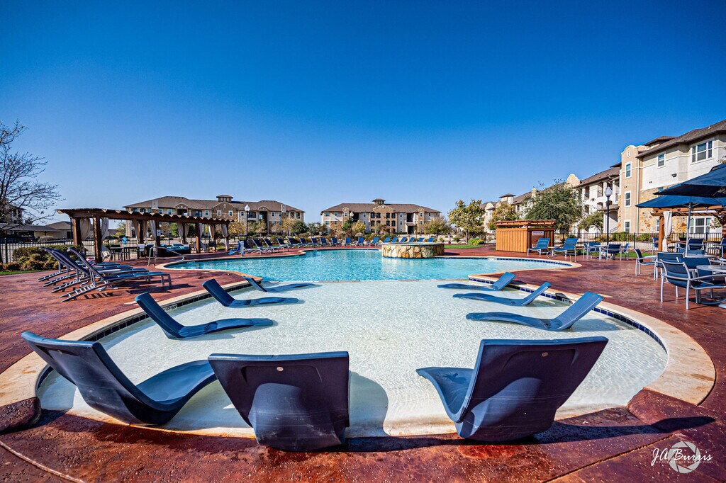 - Sparkling, resort style pool with fountains and shallow water sunning area