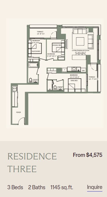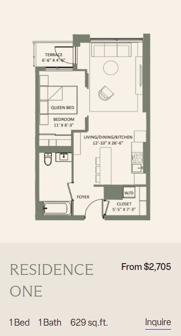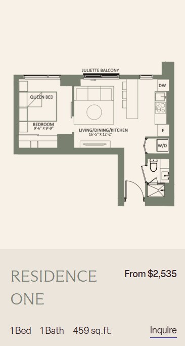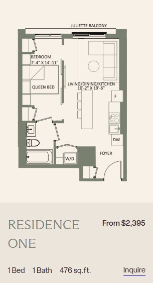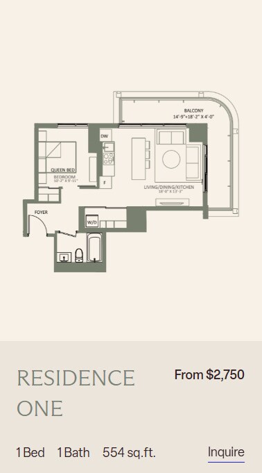Apartment Model: 1 BedroomFrom $2,2951 Bedroom, 1 Bath, 476-597 sq ftAvailable Now![]()