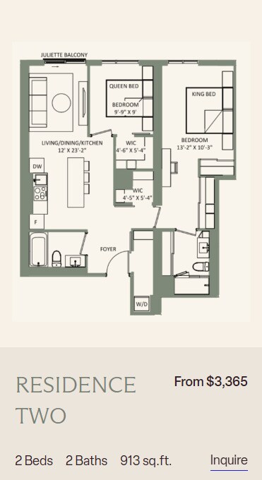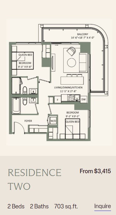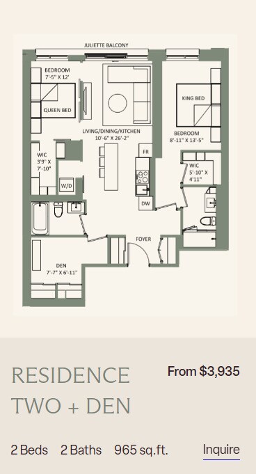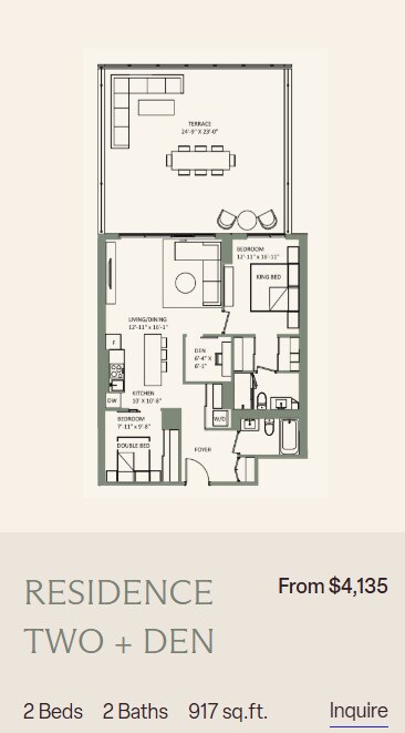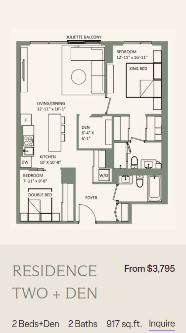 Price Availability Date Unit Sq Ft From $3,195 Available Now 2 Bedroom 2 bath + Den 917-1185 sq ft Model Amenities and Features