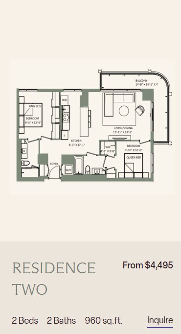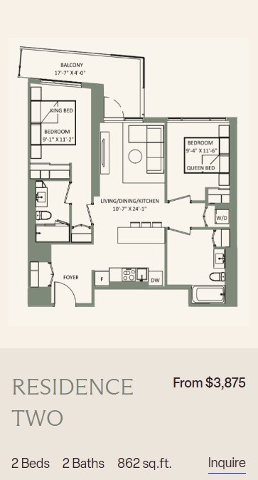 Apartment Model: 2 Bedroom 2 bath + DenFrom $3,1952 Bedroom, 2 Bath, 917-1185 sq ftAvailable Now![]()