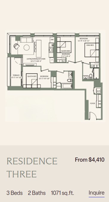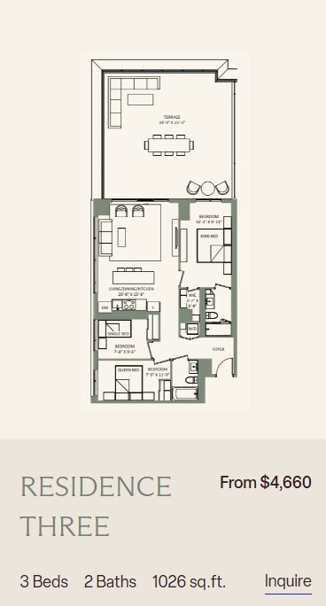 Studio to 3 Bedroom Apartments at SVNTY currently range from $2,140 to $6,400