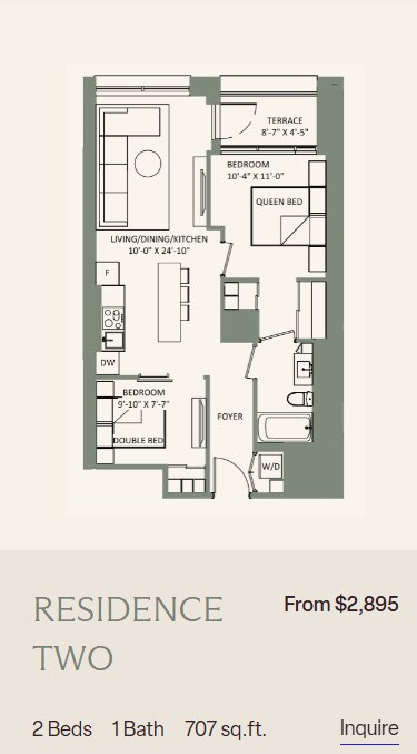 Apartment Model: 2 BedroomFrom $2,8952 Bedroom, 1 Bath, 707-1291 sq ftAvailable Now![]()