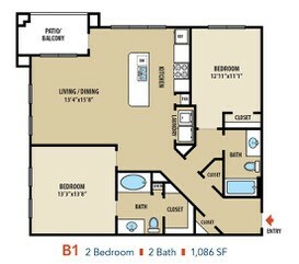 Apartment Model: B1From $1,4852 Bedroom, 2 Bath, 1086 sq ftAvailable Now![]()