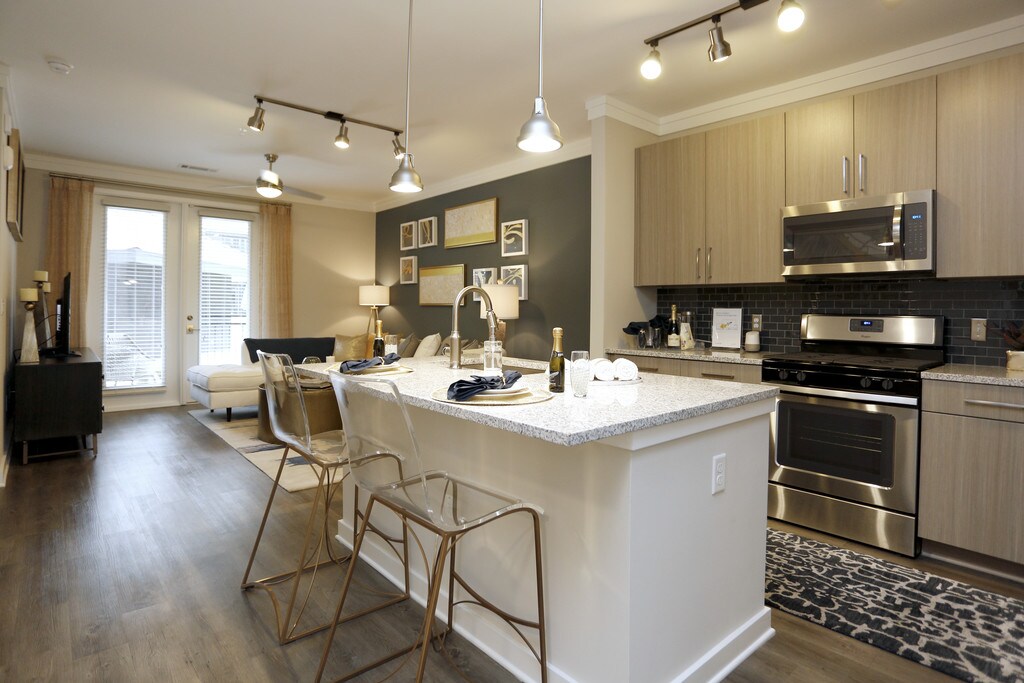 In the heart of trendy Smyrna, Georgia – a short drive away from Atlanta – SYNC at Jonquil has everything you are looking for in your next home, with extra features that will change the way you think about apartment living. Experience unparalleled comfort and convenience, with resort-style amenities that set us apart from other luxury apartments in the area. Modern, open concept floor plans offer 1, 2, or 3 bedroom apartments. You'll love our spacious kitchens, oversized rooms and open living spaces. Designer touches such as custom lighting, stylish tile backsplashes, polished upscale appliances, granite countertops, and wood style flooring add luxury to the comforts of home. With several unique and thoughtfully crafted layouts, we will have one that is perfect for you.