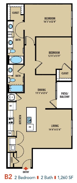 2 Beds, 2 Baths, 1260 sq ftAvailable Nov 28Largest 2 BedroomThis is the largest 2 Bedroom at this PropertyModel Gallery