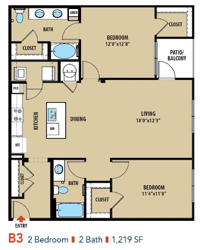 Apartment Model: B3From $1,6302 Bedroom, 2 Bath, 1219 sq ftAvailable NowB3 - Floorplan 1 Apartment Unit: 2304Apartment Model: B3$1,6302 Bedroom, 2 Bath, 1219 sq ftAvailable NowFloorplan B1