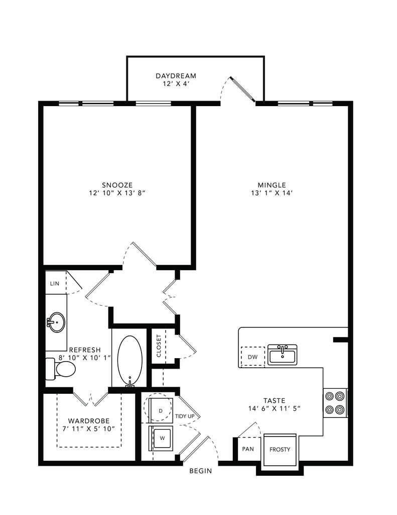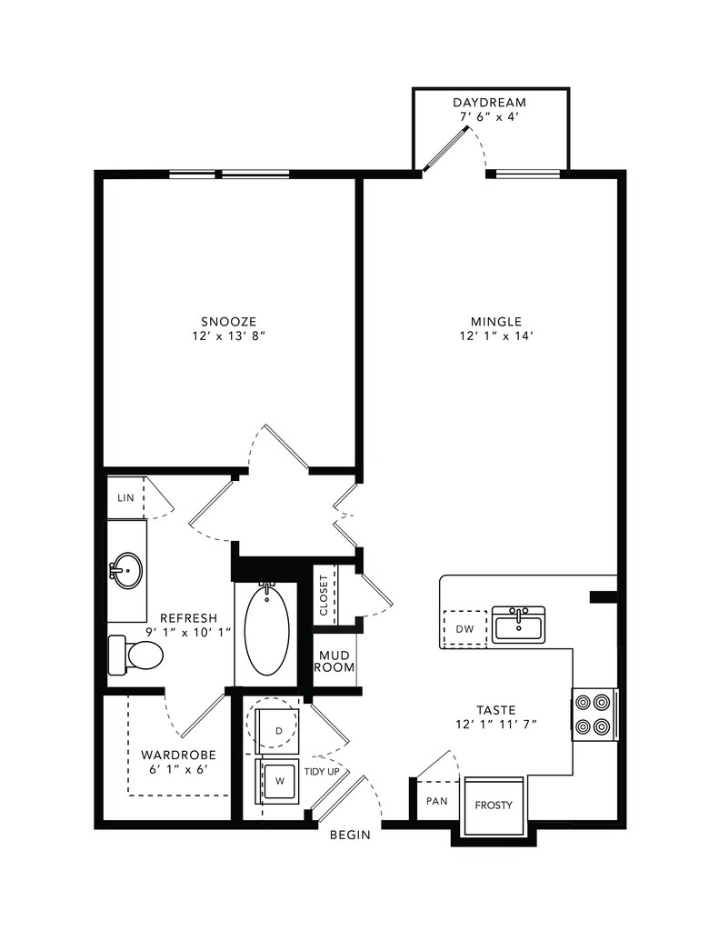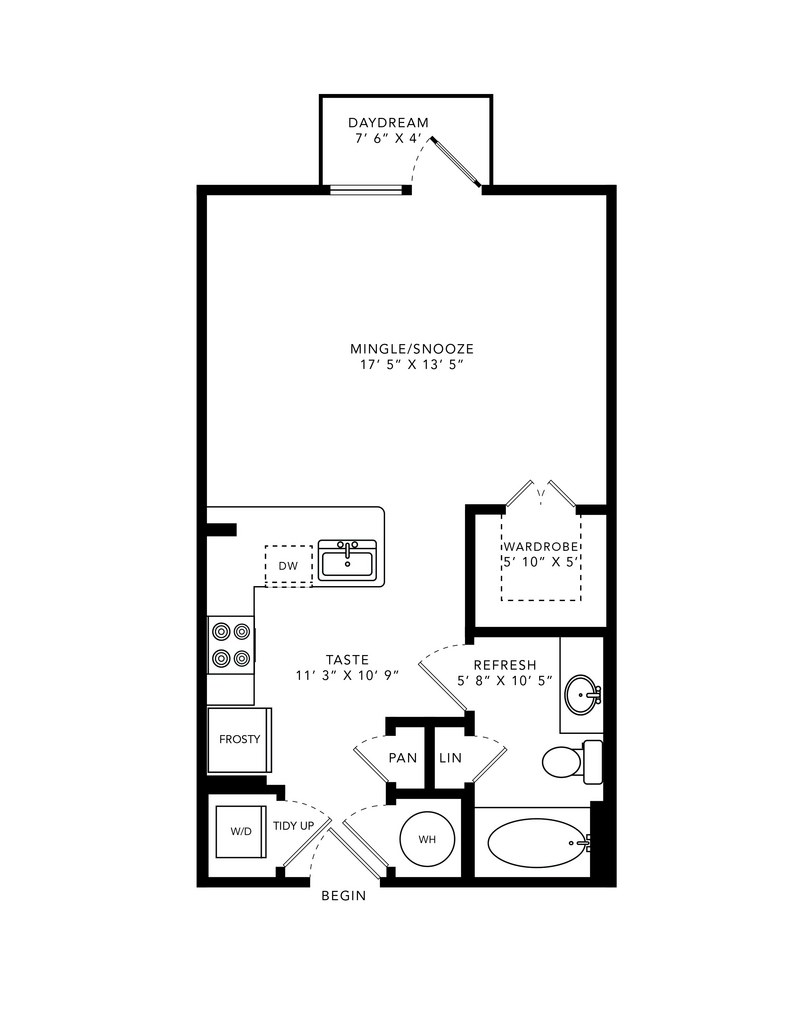 Studio, 1 Bath, 540 sq ftAvailable NowModel Gallery