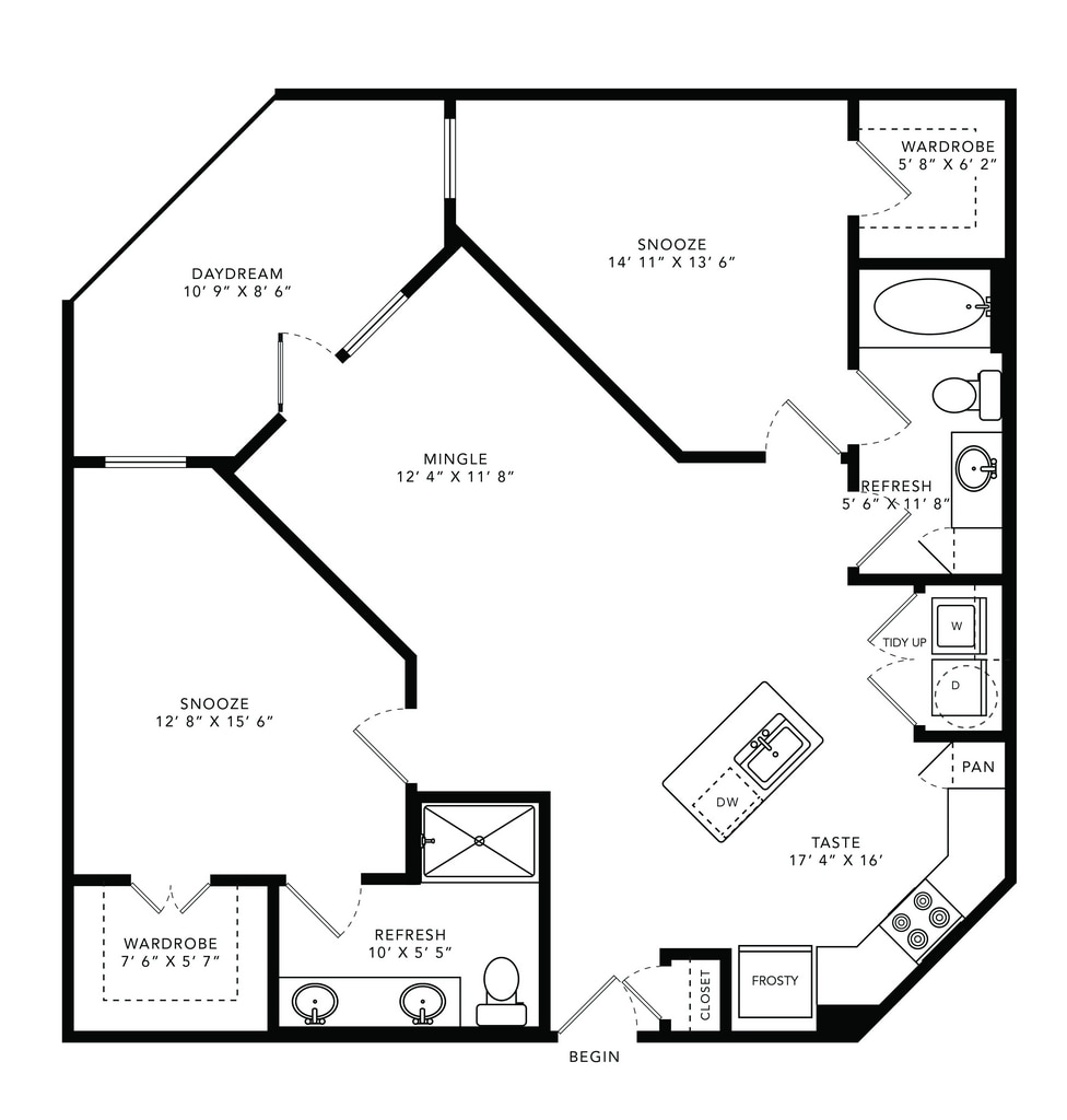 Apartment Model: A3From $1,2501 Bedroom, 1 Bath, 779 sq ftAvailable NowFloorplansPhotos![]()