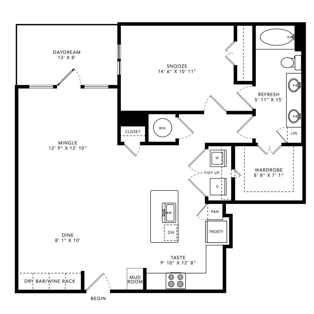 1 Bed, 1 Bath, 845 sq ftAvailable NowModel Gallery