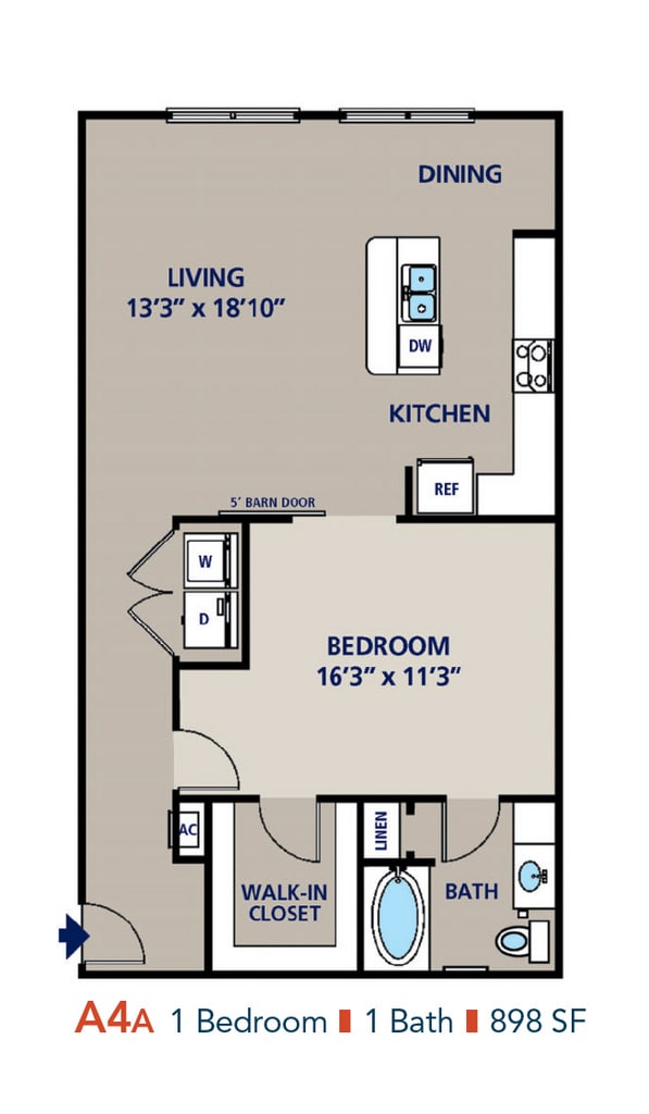 Studio, 1 Bath, 827 sq ftLargest StudioThis is the largest Studio at this PropertyModel Gallery