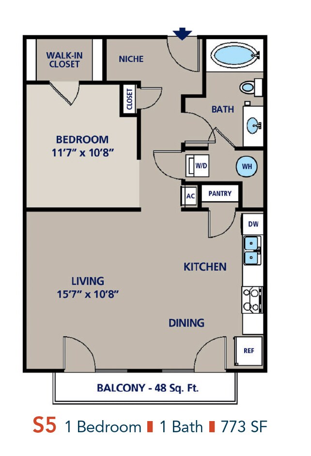 Apartment Model: S3Call For RatesStudio, 1 Bath, 827 sq ftUnavailable![]()