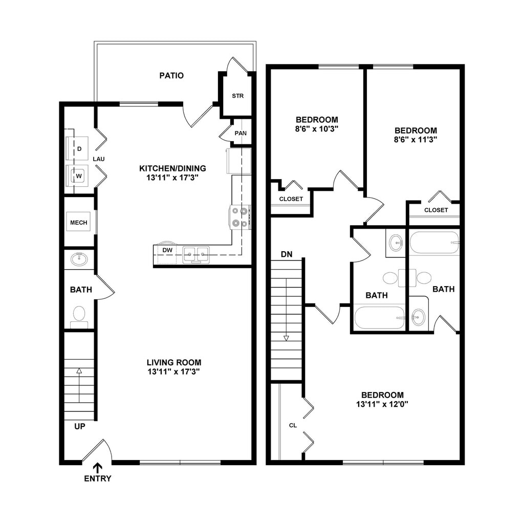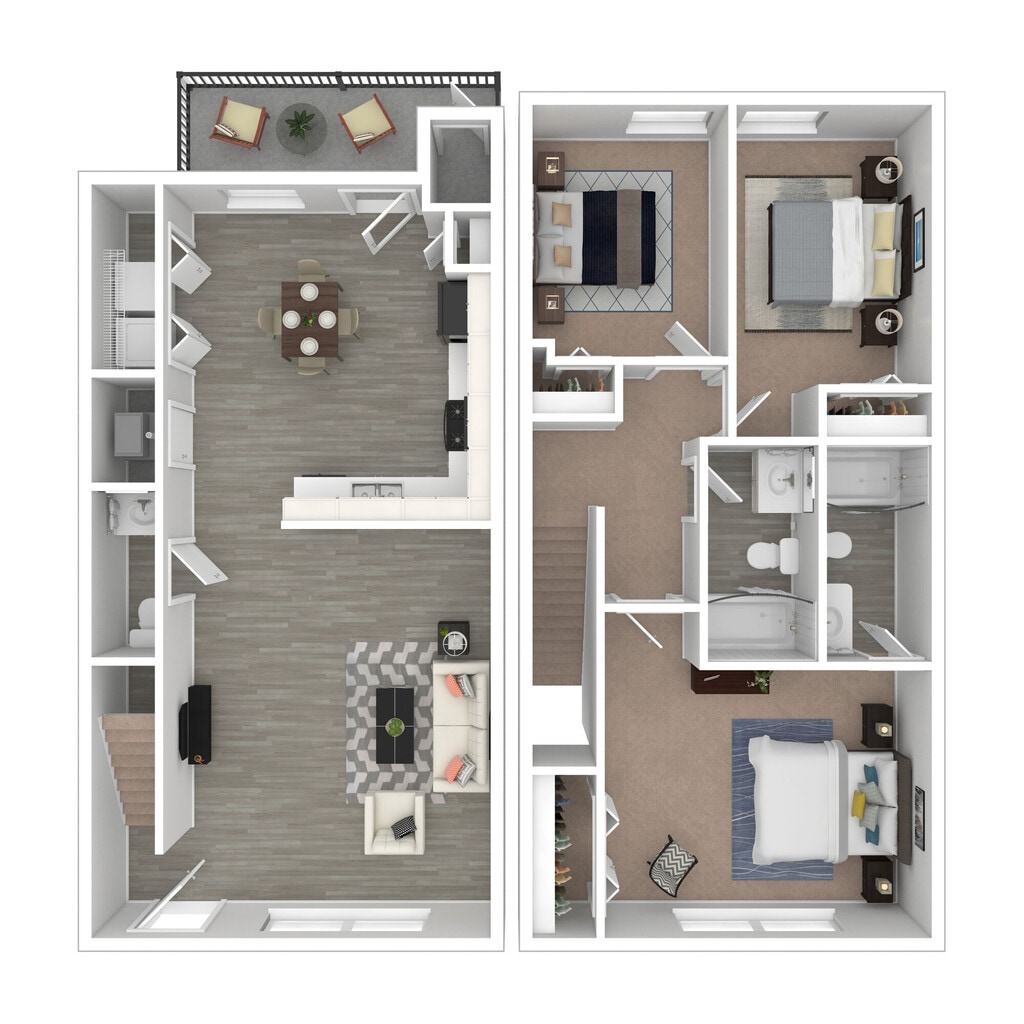 3 Beds, 2.5 Baths, 1116-1214 sq ftAvailable NowModel Gallery