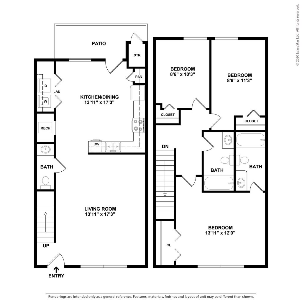 3 Beds, 2.5 Baths, 1214 sq ftAvailable NowModel Gallery