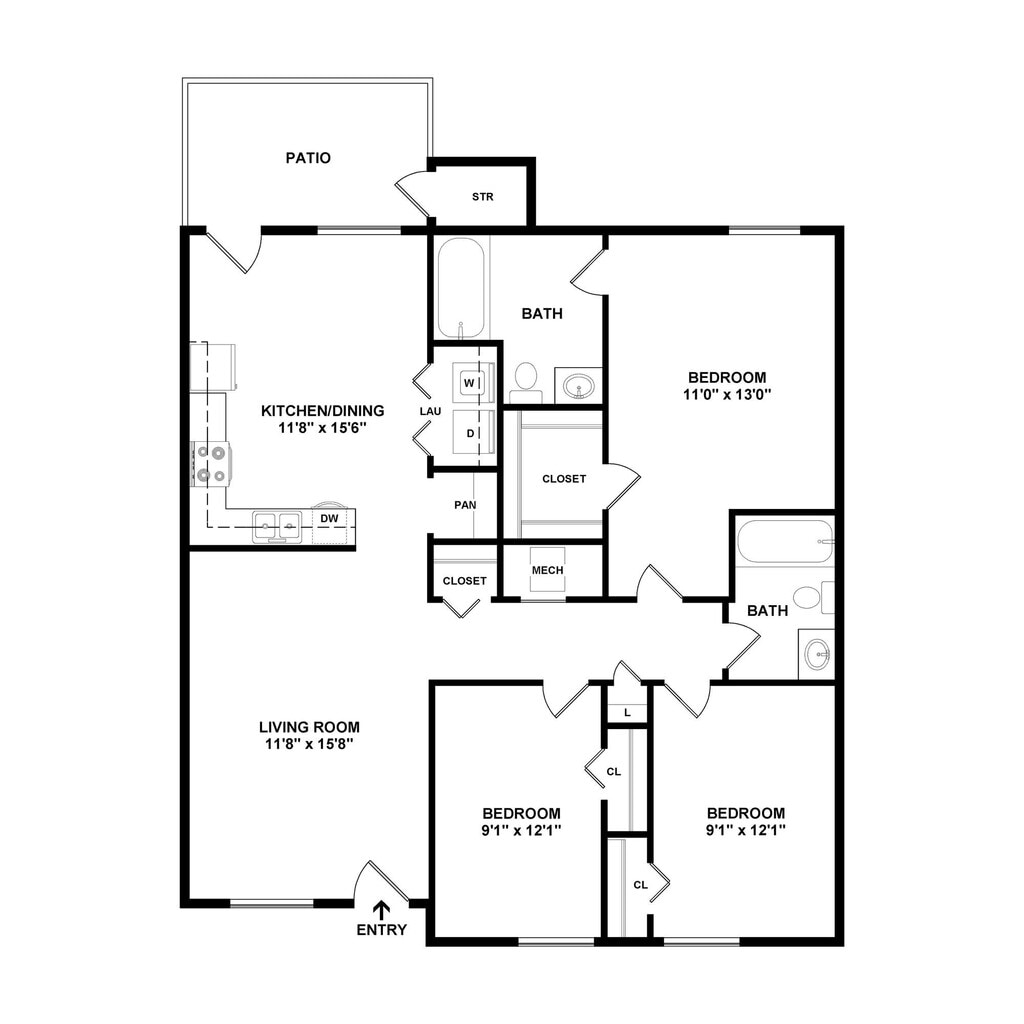 Apartment Model: Palmetto - Classic$1,7503 Bedroom, 2 Bath, 1116 sq ftUnavailable![]()