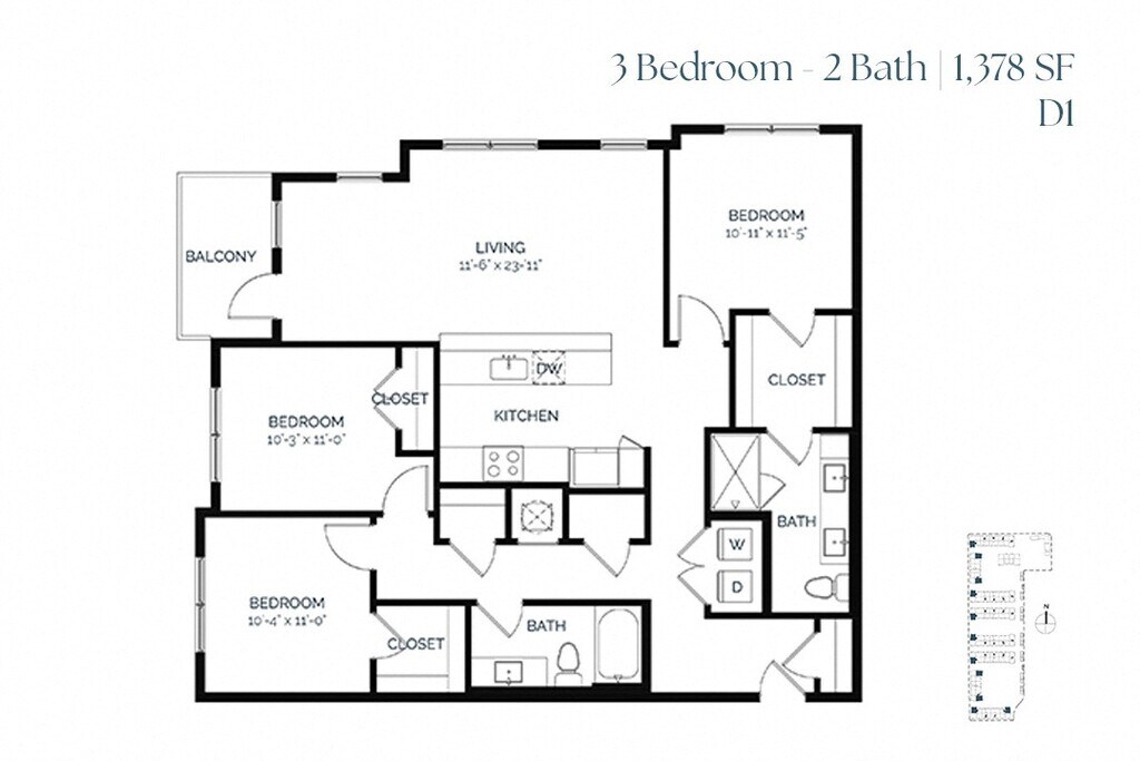 Unit: 9-109 - Image 1 Apartment Unit: 3-306Apartment Model: One Bedroom A1$1,6101 Bedroom, 1 Bath, 757 sq ftAvailable NowOne Bedroom A2