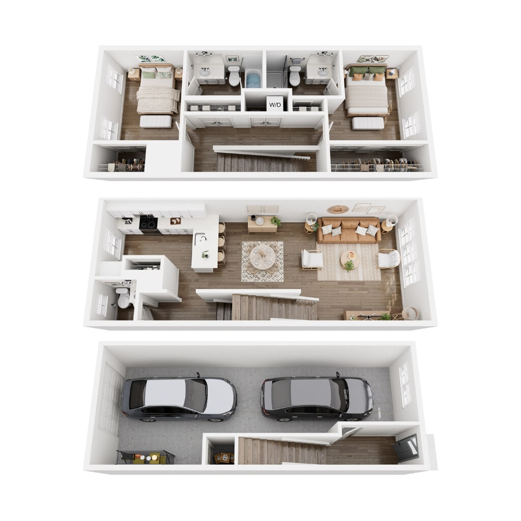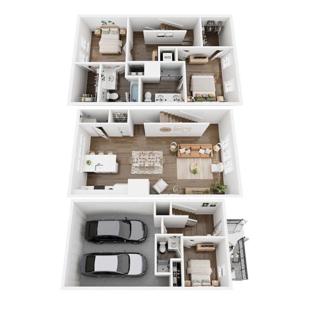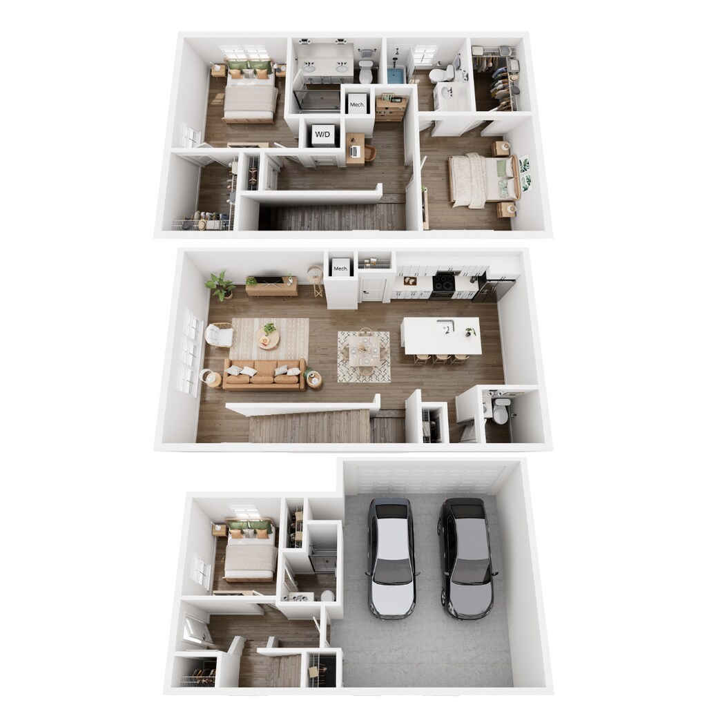 2 Beds, 2.5 Baths, 1579 sq ftAvailable April 1, 2026Model Gallery